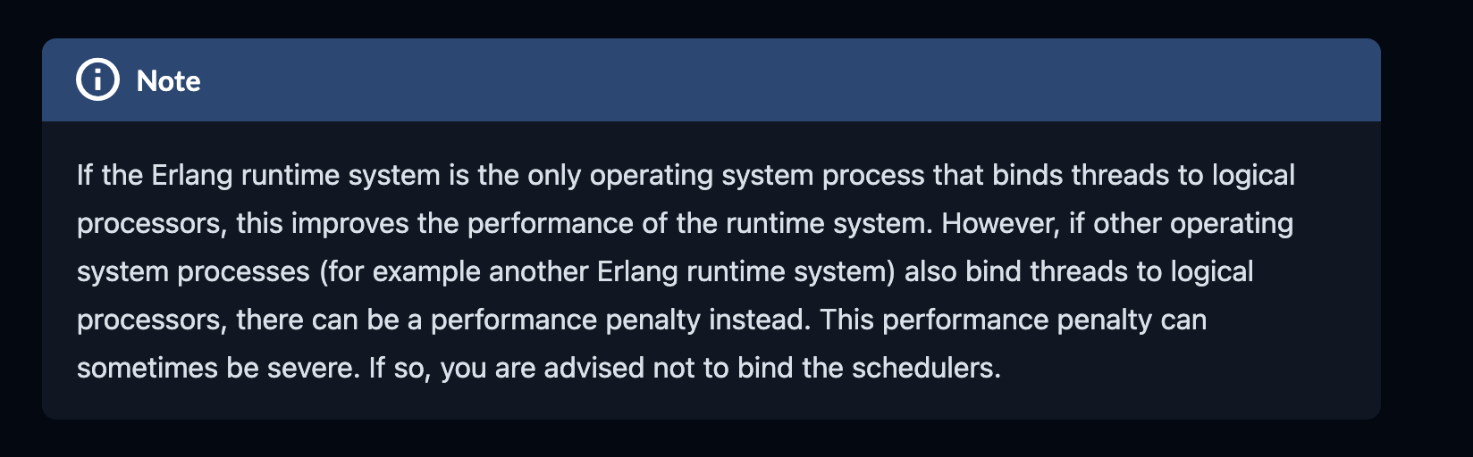 At the start, I mentioned that we bound Erlang schedulers to specific CPUs, pinning specific schedulers to specific cores.
